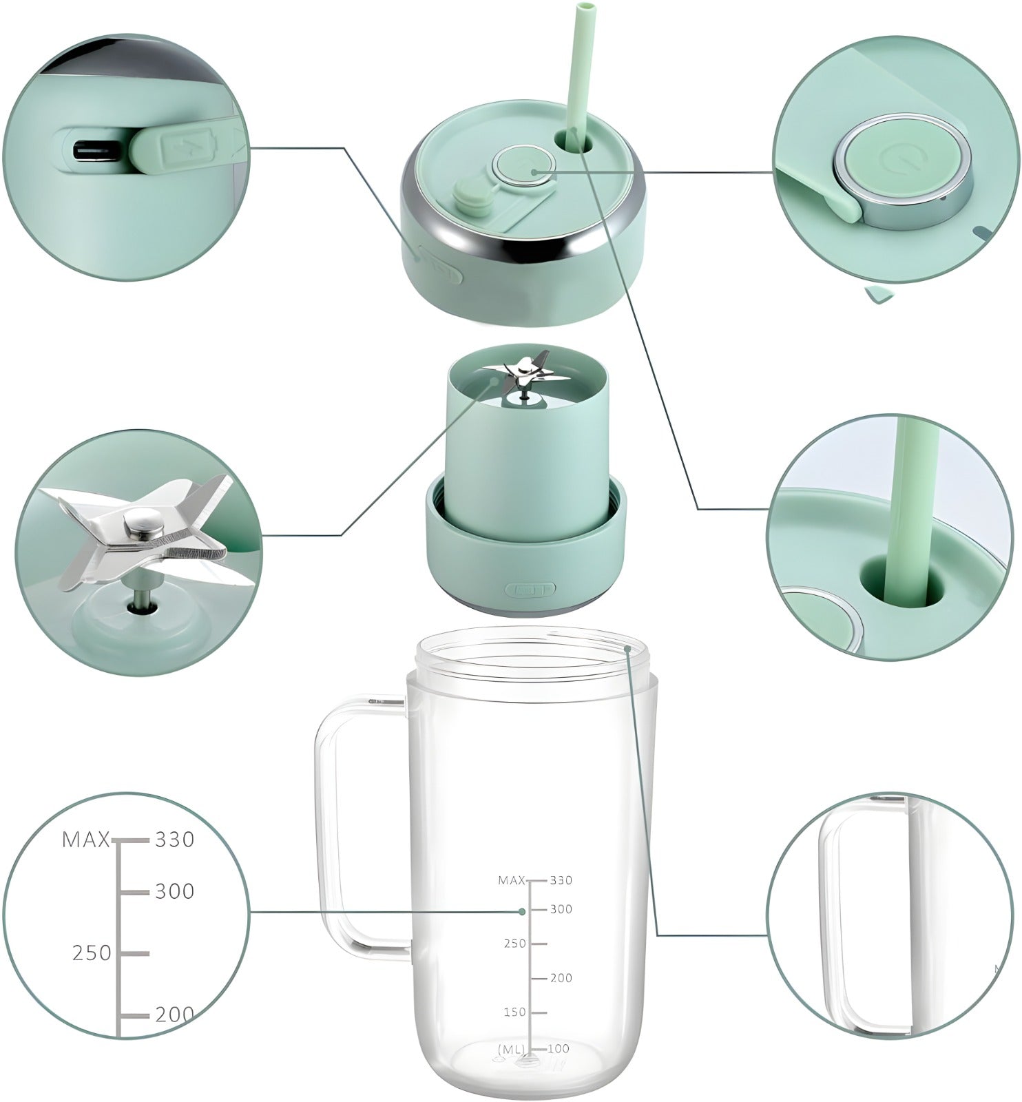 - Rechargeable Battery: Equipped with a 1200mAh battery, enjoy cordless juicing anytime, anywhere. Ideal for outdoor activities, travel, or office use.
